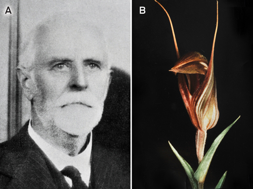 Richard Sanders Rogers was a senior physician and forensic pathologist and an acknowledged international authority on orchids of Australasia. He served as honorary physician at the Adelaide Hospital (1897–1909) and as a member of the Medical Board of South Australia (1910–1940). He also served with distinction as the commanding officer of the 7th Australian General Hospital during World War I.28 He published 29 scientific articles on orchids of Australia and named 82 new species. His many publications include his book An introduction to the study of South Australian orchids, published in 1909, and the section on Orchidaceae in John McConnell Black’s book Flora of South Australia, published in 1922. Two orchids bear his name (Box) — one is Rogers’ Greenhood (Pterostylis rogersii), also known as the Curled-tongue Shell Orchid.