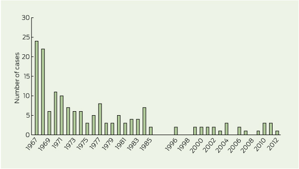 3 Number of new echinococcosis diagnoses per year in Tasmania, 1967–2012