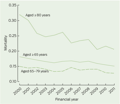 2 Annual risk-adjusted age-matched mortality rate for older intensive care unit patients (aged ≥ 65 years) for the financial years 1999–2000 to 2010–2011