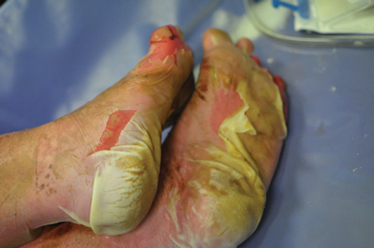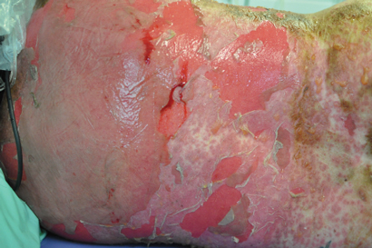 The patient was immediately transferred to the burns unit and managed with nanocrystalline silver dressings, intravenous immunoglobulin, aggressive fluid and electrolyte balance therapy, analgesia and intravenous antibiotics. She was discharged home on Day 15.