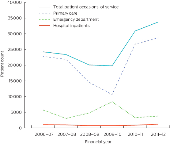 Key policy and structural inputs resulted in an increase in primary care activity (Box 1). There was an overall increase in service activity over the 6-year period, with a relatively constant number of hospitalisations. The increasing trend of emergency department presentations (mostly non-urgent triage category 4 and 5) was reversed, as an increasing number of patients were seen in the PHC clinic (Box 2).