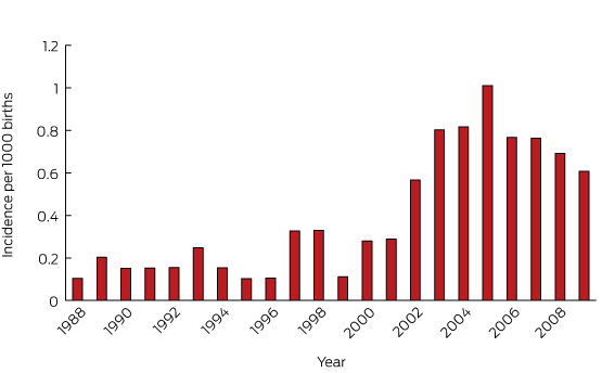 Box 1 – Incidence of late diagnosed cases of developmental dysplasia of the hip in babies born 1988–2009 in South Australia