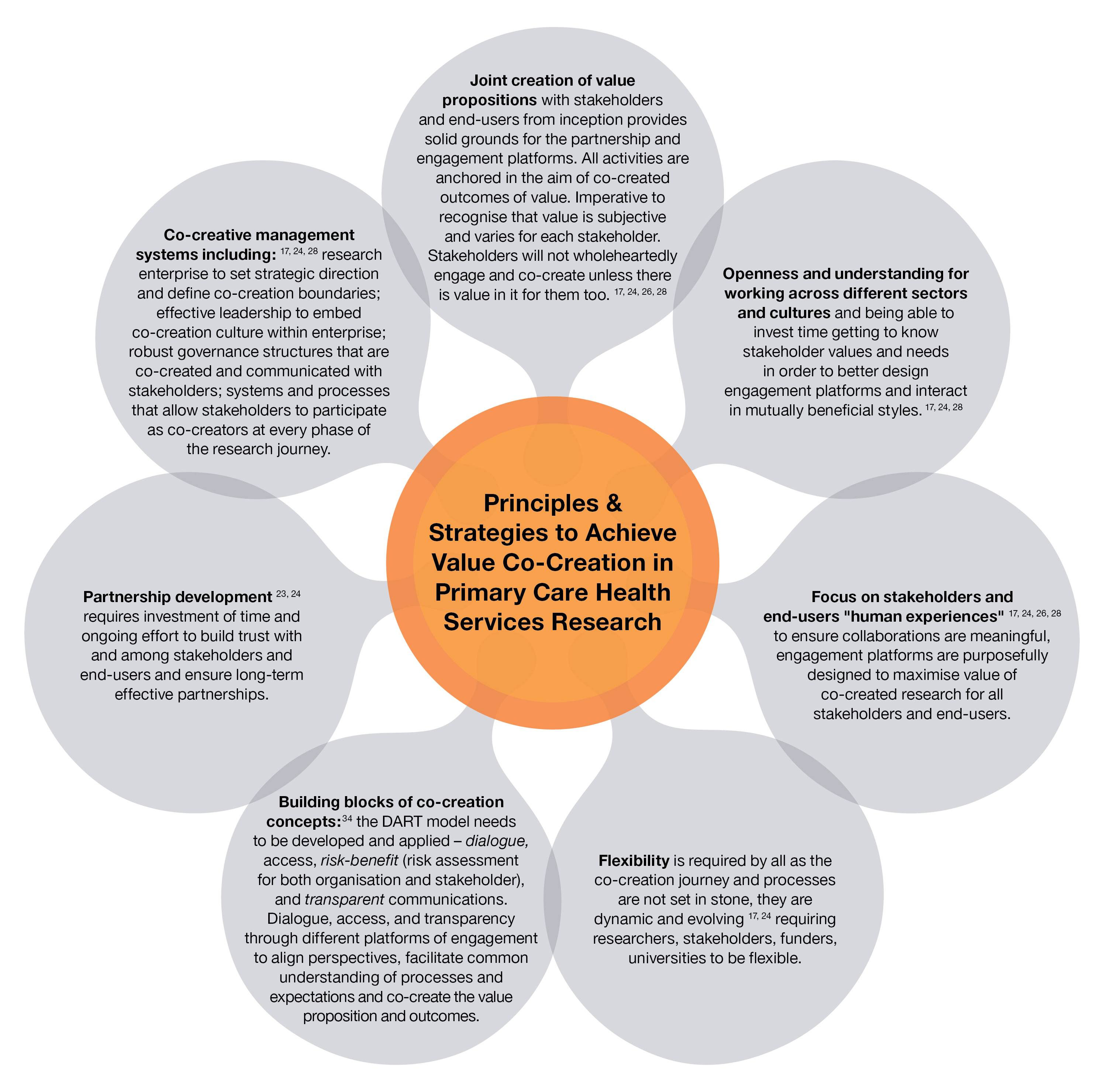Box 4 – Summary of the key principles and strategies for achieving value co-creation in primary care health services research17,23,24,26,28,34