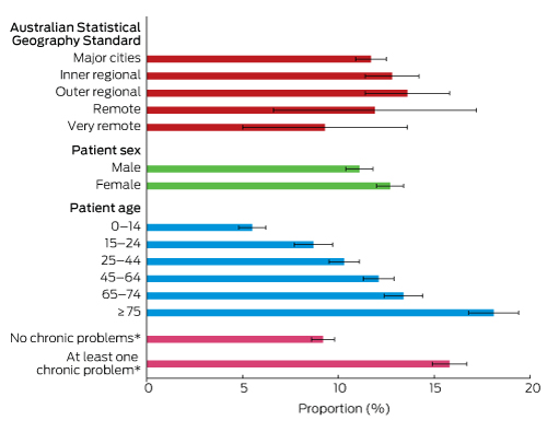We thank the participating GPs for their generosity, and all members of the BEACH research team. The BEACH program is funded by a consortium of pharmaceutical manufacturers, Australian government agencies, and government-funded quality-of-care agencies. Each group provides funding through a research agreement with the University of Sydney that provides complete research autonomy for the team conducting the BEACH program. Research design, data collection and analysis, and reporting of findings remain with the principal investigators under the ethical supervision of the Human Research Ethics Committee of the University. During 2012–2014, BEACH was funded by the Australian Government Departments of Health and Ageing and Veterans’ Affairs, the National Prescribing Service, AstraZeneca, bioCSL (Australia), Merck Sharp and Dohme (Australia), Novartis Pharmaceuticals Australia and Pfizer Australia.