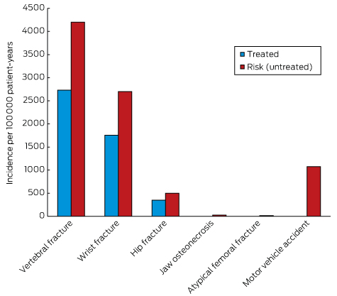 Minimal trauma fractures remain a major cause of morbidity in Australia, affecting one in two women and one in four men over the age of 60 years.1 Mortality is increased after all minimal trauma fractures, even after minor fractures.2 Hip fractures are particularly devastating, leading to decreased quality of life, increased mortality and loss of functional independence.3