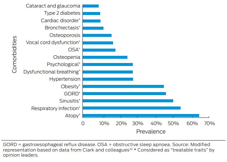GORD = gastroesophageal reflux disease. OSA = obstructive sleep apnoea. Source: Modified representation based on data from Clark and colleagues32 * Considered as “treatable traits” by opinion leaders.