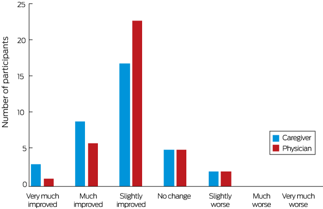 Box 4 – Caregiver and physician Global Impression of Change assessments for 40 children with drug-resistant epilepsy after 12 weeks’ treatment with cannabidiol*