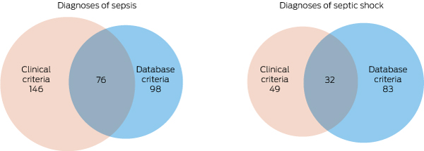 Conclusions: When compared with the reference standard — prospective clinical diagnosis — ANZICS CORE database criteria significantly underestimate the incidence of sepsis and overestimate the incidence of septic shock, and also result in lower estimated hospital mortality rates for each condition.