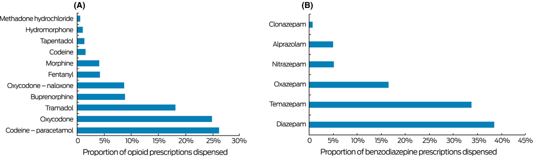 Studies in the United States have raised concerns about the increasing concomitant prescribing of opioids and benzodiazepines and the incidence of associated serious harms, including respiratory depression, hospitalisation, and death.1,2,3 As a result, and following their own 2016 review, the Food and Drug Administration decided that opioid and benzodiazepine medications in the US must include boxed warnings about possible serious side‐effects.4 Whether concomitant prescribing has also increased in Australia is unknown.
