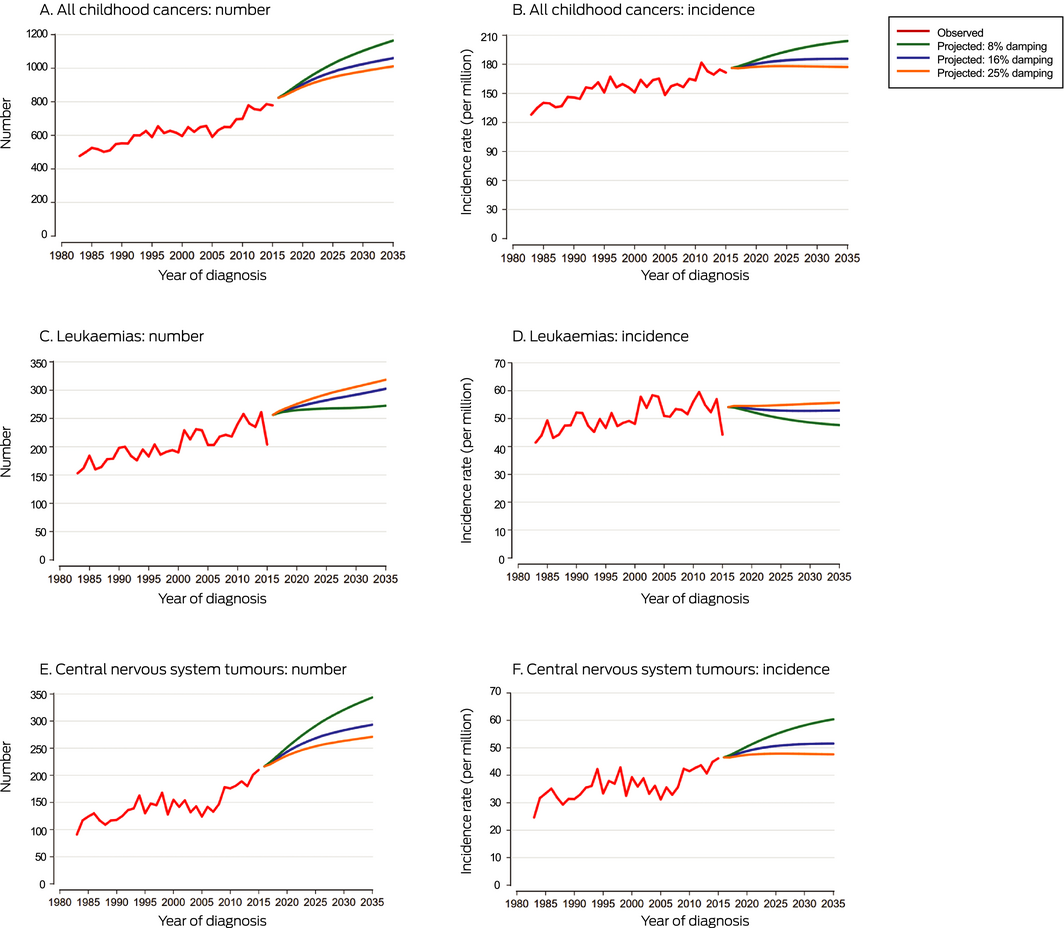 The aetiology, biology, and clinical classification of childhood cancers differ from those of cancers diagnosed in adults.1,2 Childhood cancers are nevertheless usually either omitted from routine cancer statistics or included in those for the much more numerous adult cancers, obscuring implications specific to children. The Australian Institute of Health and Welfare has published cancer incidence projections for all age groups combined,3 but not separately for children.