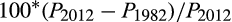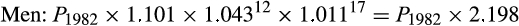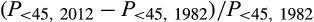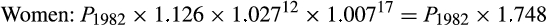 where P< 45, Y = probability of breast cancer diagnosis in women under 45 in year Y. We applied this adjustment factor to the lifetime probability of a breast cancer diagnosis (including in situ cancers) in 1982 to estimate the lifetime probability of breast cancer diagnosis in 1982, assuming 2012 risk factor levels. To account for in situ cancers likely to have been diagnosed but not recorded in registries in 1982 we multiplied the adjusted 1982 estimate by 1.02.18,19