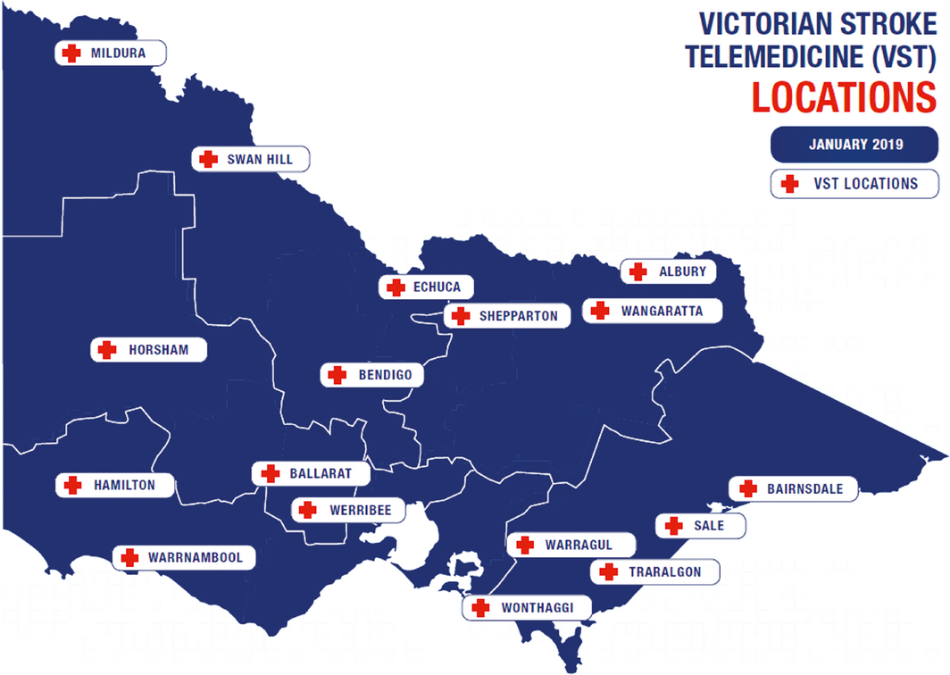 Conclusions: Telemedicine has provided Victorian regional hospitals access to expert care for emergency department patients with suspected acute stroke. Eligible patients with ischaemic stroke are now receiving stroke thrombolysis more quickly and safely.