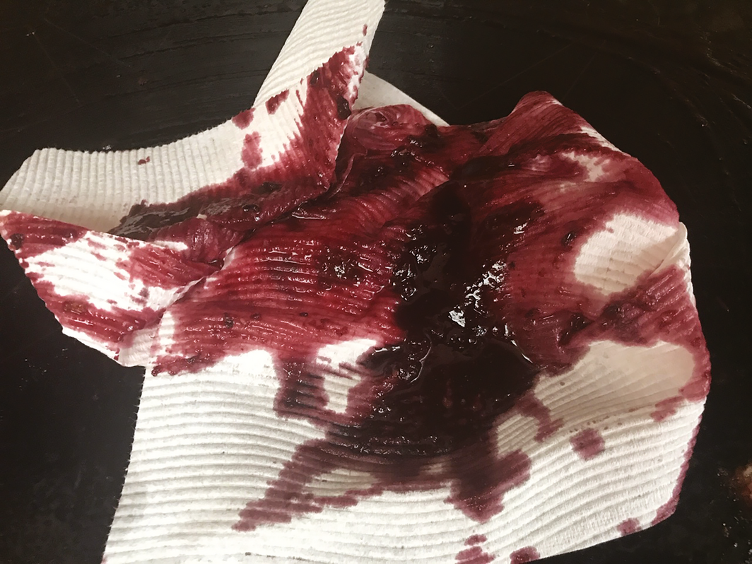 In many regards, the explosion was an epiphany, reminiscent of a major polytrauma. Mulberries are ferociously red … the smallest quantity of fluid stained everything and not only do the stains remain, the dispersed fluid clots like blood! It was just like being at work again. For the mulberry clot, see Box 2.