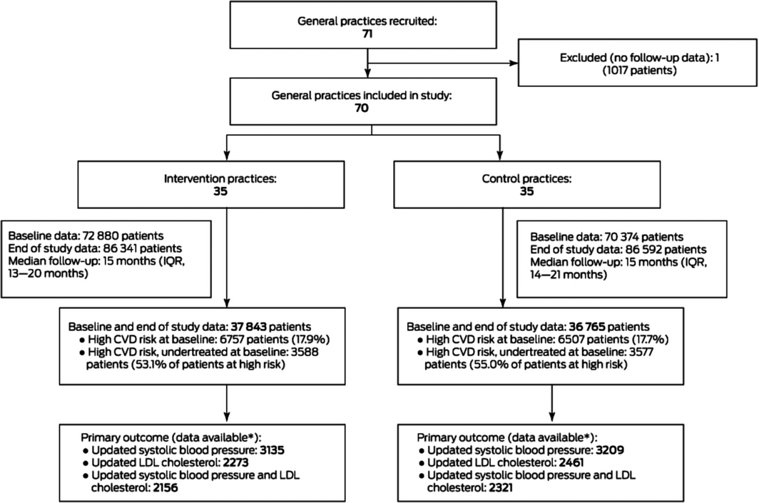 The new: Uptake by participating general practices and pharmacies of three evidence‐based strategies for improving CVD risk factor management was disappointing, and the intervention had no significant impact on the management of blood pressure and LDL cholesterol in undertreated patients at high risk of CVD.