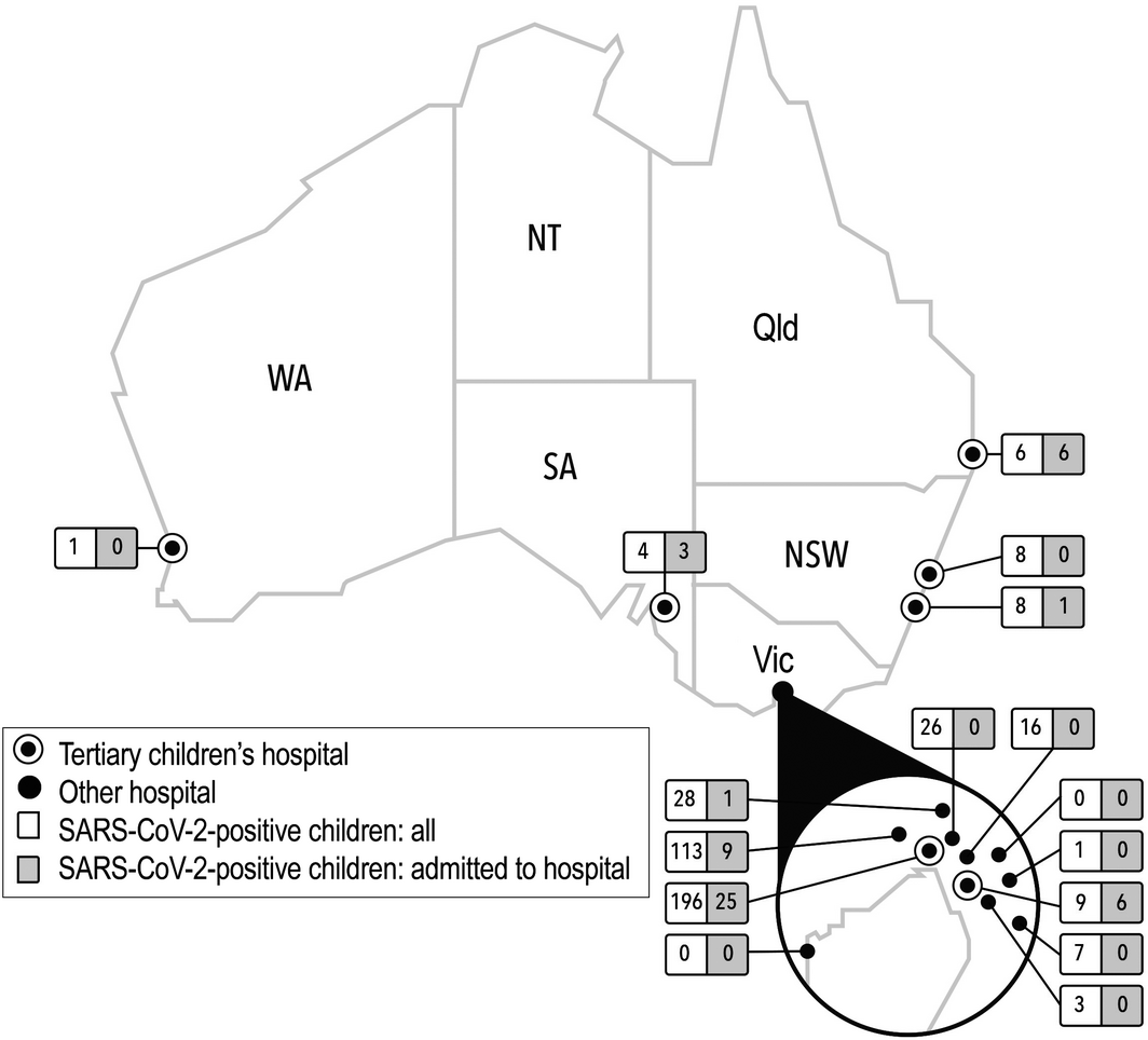 A 2020 study in a tertiary Victorian hospital identified overseas travel and contact with someone known to be SARS‐CoV‐2‐positive as risk factors for children.13 We have undertaken a multicentre study to examine the epidemiological and clinical characteristics of children positive for SARS‐CoV‐2 in Australia.