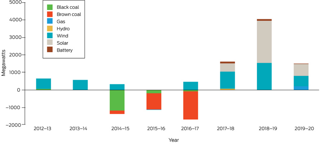- 67. Australian Government Department of Industry, Science, Energy and Resources. Australian energy statistics, Table O: Electricity generation by fuel type 2018–19 and 2019. Canberra: DISER, 2020. https://www.energy.gov.au/publications/australian‐energy‐statistics‐table‐o‐electricity‐generation‐fuel‐type‐2018‐19‐and‐2019 (viewed May 2021).