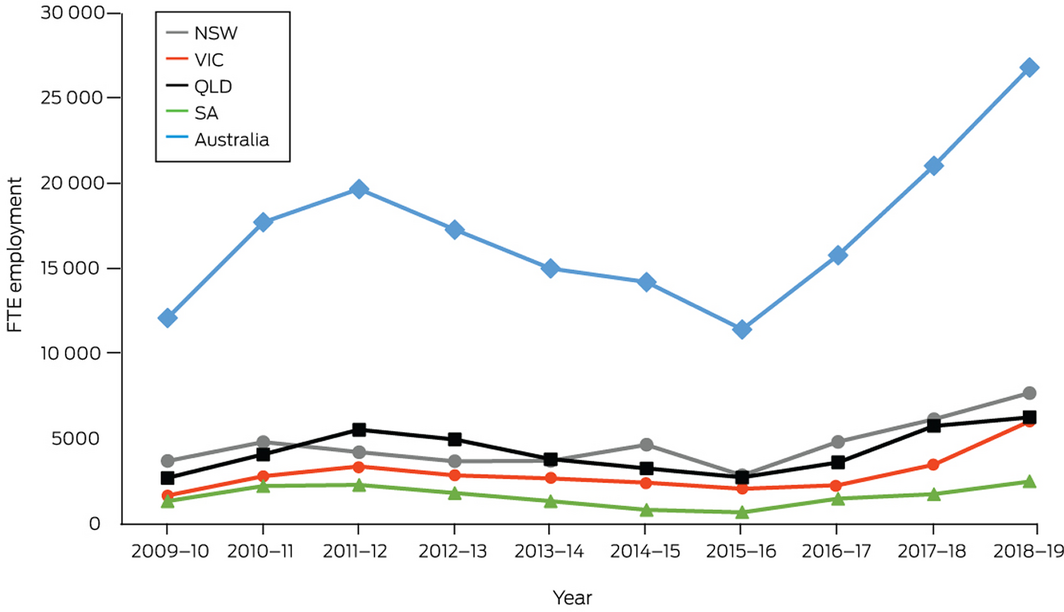- 101. Australian Bureau of Statistics. Australian industry: 2018–19 financial year. Canberra: ABS, 2020. https://www.abs.gov.au/statistics/industry/industry‐overview/australian‐industry/2018‐19 (viewed May 2021).