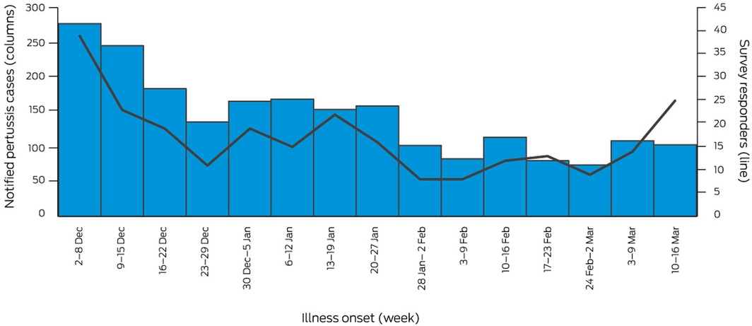 In December 2018 and January 2019, people with notified influenza were seven times as likely to have travelled overseas or to have had contact with an ill overseas traveller in the week before the onset of illness than people with notified pertussis infections; this association did not apply during later summer months (February–March 2019). This could indicate that the epidemic was initially linked to influenza importation, and that local transmission played a larger role in epidemic propagation in later months.