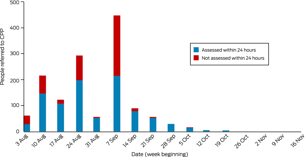 A sharp rise in the number of COVID‐19 cases during June and July 2020 led the Victorian government to declare a state of disaster on 2 August 2020.4 As Victorian legislation prohibits the disclosure of patient‐identifying information5,6 and testing for the severe acute respiratory syndrome coronavirus 2 (SARS‐CoV‐2) relied on self‐referral, the Victorian public health unit is the sole repository for information on people with COVID‐19. As the capacity of contact tracing systems was stretched, concerns arose about the health, welfare, and compliance of people required to isolate, particularly as COVID‐19 has been associated with asymptomatic hypoxia and out‐of‐hospital cardiac arrest.7