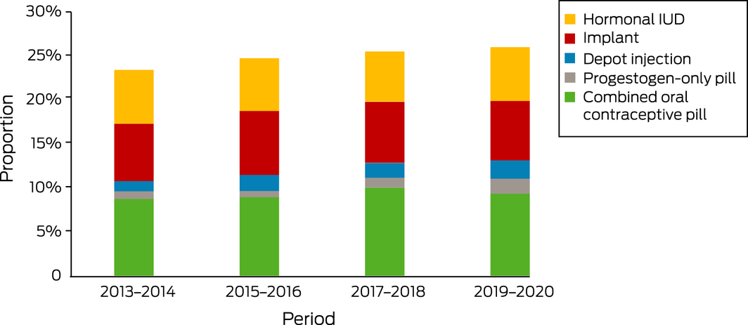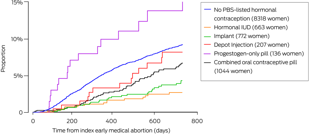 We therefore examined hormonal contraception used by women after early medical abortion in Australia, and the influence of contraception type on the likelihood of a further medical abortion. We analysed data in the nationally representative Pharmaceutical Benefits Scheme (PBS) 10% sample4 for women aged 15–49 years for whom mifepristone was dispensed for early medical abortion during 2013–2020.