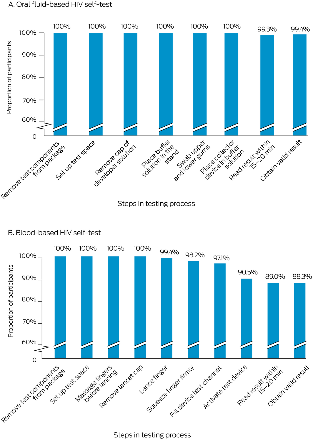 Studies in Australia,13,14 in other high income countries15,16,17 and in resource‐limited countries18,19 have found high levels of usability and acceptability of HIV self‐tests among people at risk. To inform the further use of HIV self‐tests in Australia, we assessed the ease of use of HIV self‐test kits (oral fluid‐ or blood‐based), preferred HIV self‐test type, and difficulties encountered during HIV self‐testing by men who have sex with men.
