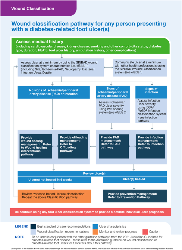 - 17. Hamilton EJ, Scheepers J, Ryan H, et al. Australian guideline on wound classification of diabetes‐related foot ulcers: part of the 2021 Australian evidence‐based guidelines for diabetes‐related foot disease. J Foot Ankle Res 2021; 14: 60.