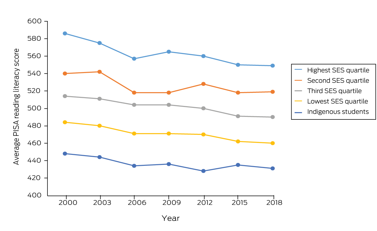 It has been frustrating that despite numerous reforms, reviews and growing financial spending, Australian students’ performance in basic school subjects has not improved during the past two decades. Educational performance in Australia as a whole and within its different jurisdictions has systematically been measured since the 2000s. The OECD Programme for International Student Assessment surveys show that, in comparison to international benchmarks, Australian students’ academic achievements have declined since 2000.17 These data also show that large achievement gaps between different socio‐economic and other equity groups have persisted since 2000 (Box 3).