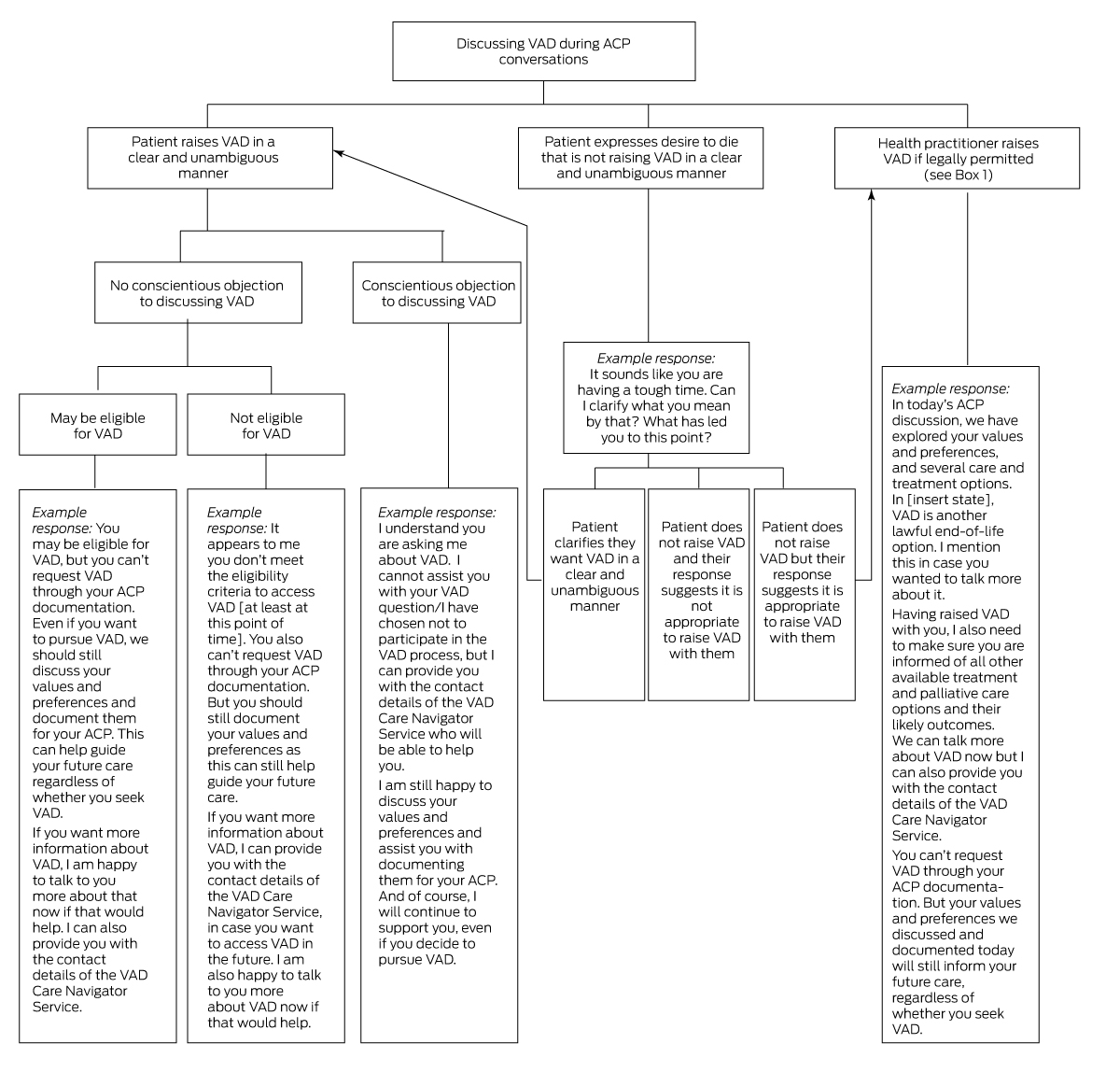 If a patient raises voluntary assisted dying during an advance care planning discussion, health practitioners are free to discuss it. However, if not initiated by a patient, Australian law (Box 1) is unusual internationally because it regulates whether, and how, a health practitioner can raise voluntary assisted dying with a patient.