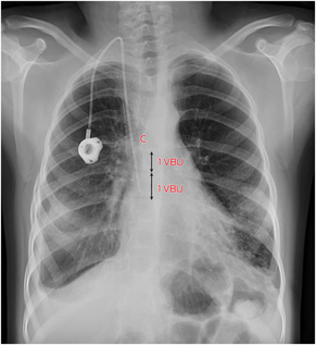 * Note the position of the catheter tip relative to the carina (C). One vertebral body unit (VBU = 1 vertebral body + 1 adjacent disc) is illustrated.