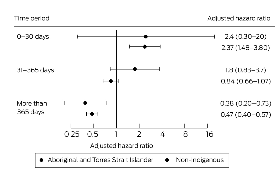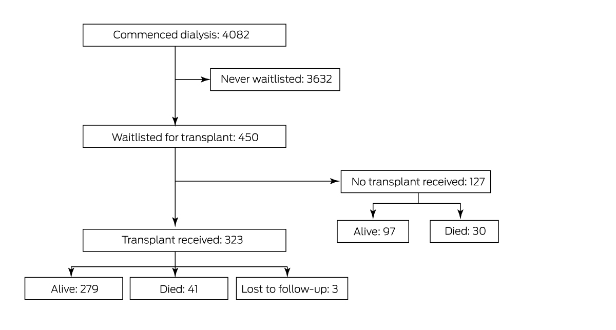 Our study was not sufficiently powered to detect differences in causes of death after transplantation or while on dialysis. We could not assess the personal burden of either treatment, including time spent away from community and Country, two major contributors to Aboriginal and Torres Strait Islander holistic views of health and wellbeing.27 Finally, we could not assess the benefit of living donor transplantation for Aboriginal and Torres Strait Islander people, the rates of which have been consistently very low.2