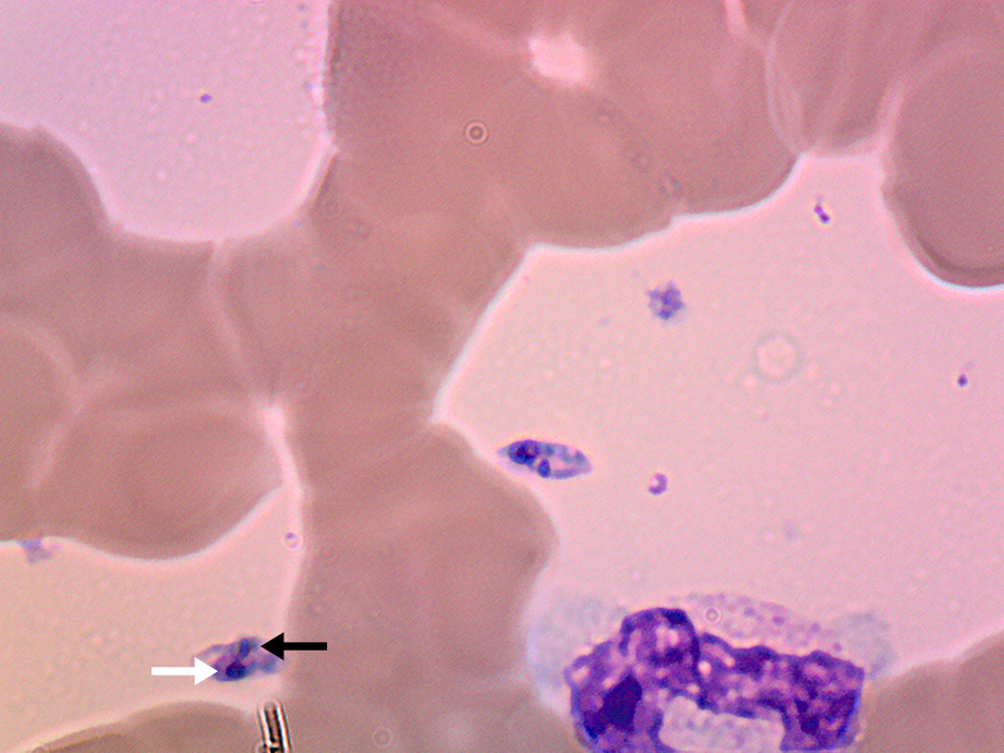 The patient re‐presented two weeks later due to worsening night sweats with no new localising symptoms and was found to have febrile neutropenia (neutrophil count, 0.4 × 109/L). Administration of empiric antibiotics was started, and azathioprine was stopped due to possible contribution to worsening myelosuppression. As the patient was born in coastal Greece and had travelled there two years prior, leishmaniasis was raised as a differential diagnosis. A repeat bone marrow aspirate revealed Leishmania amastigotes under microscopy (Box 2) and polymerase chain reaction (PCR) testing was positive for Leishmania donovani complex. The patient was treated with intravenous liposomal amphotericin 3 mg/kg/dose on Days 1–5, Day 14 and Day 21, which led to resolution of symptoms and pancytopenia six weeks after treatment.