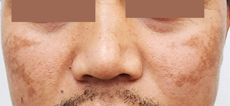 An otherwise healthy man of Southeast‐Asian descent aged in his mid‐30s presented with non‐pruritic hyperpigmented patches involving the face for over 12 months (Figure). Clinically, the findings were consistent with melasma, characterised by brown or dark brown hyperpigmented patches with demarcated or ill‐defined borders, involving the face (zygoma and cheeks) bilaterally. There was no history or clinical features suggestive of diagnoses such as post‐inflammatory hyperpigmentation, drug‐induced pigmentation or photosensitivity, or actinic lichen planus.