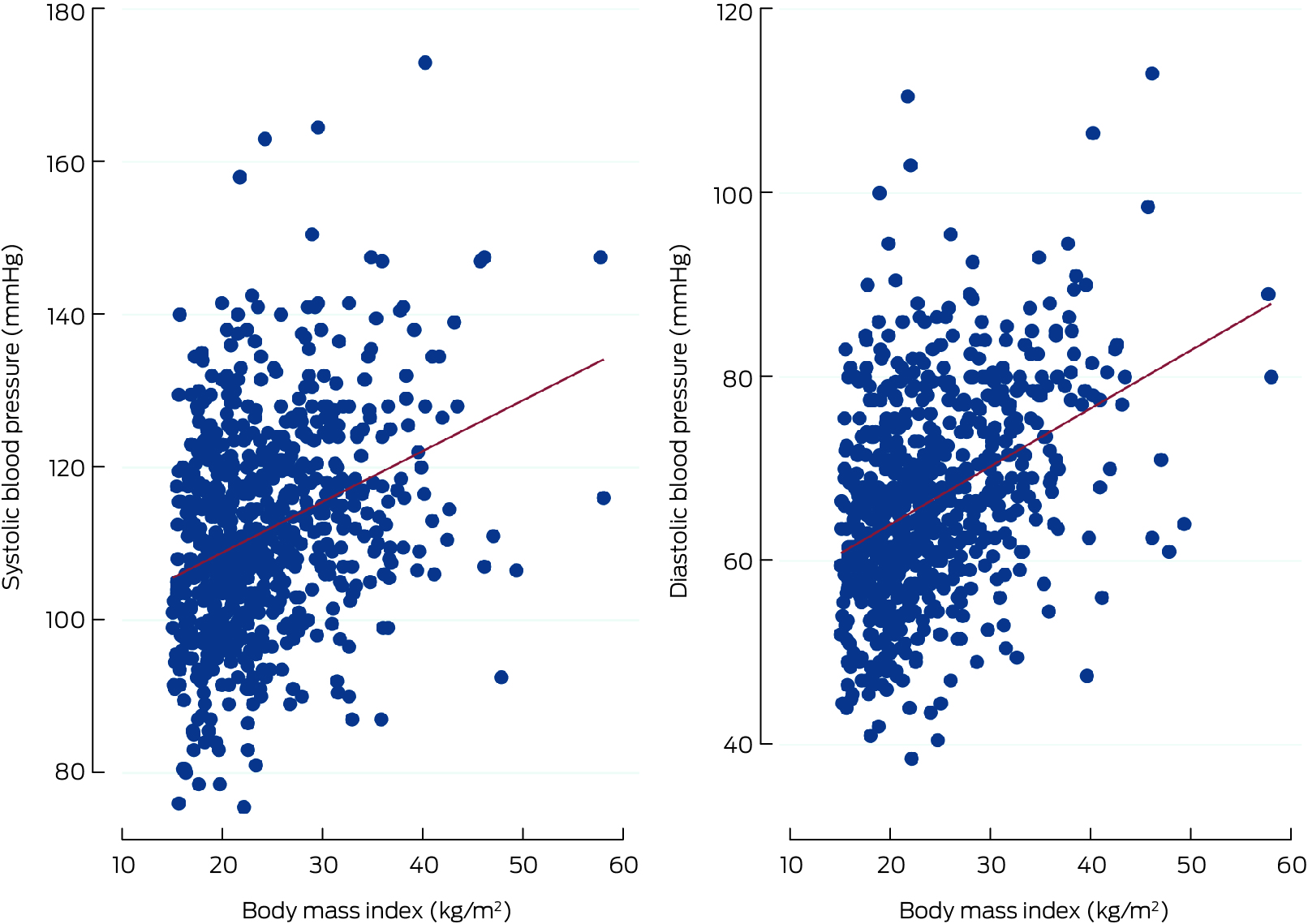 Some factors that contribute to poor cardiovascular health have been improving for Indigenous people in recent years. The proportion of Indigenous people who have never smoked increased from 49% in 2005 to 70% in 2017.28 Indigenous children are physically more active, although activity levels tend to drop during the teenage years, especially among young women.29,30 However, overweight and obesity rates are increasing among both Indigenous and non‐Indigenous Australians, possibly contributing to the high prevalence of hypertension. Further, as 12.0% of participants in our study with normal BMI had hypertension, other factors probably contribute to high rates of elevated blood pressure. These could include the ongoing impact of colonisation on Indigenous communities and culture, broader socio‐cultural determinants, and experience of racism and discrimination.31,32 Low birthweight, an independent predictor of higher blood pressure, is more frequent among Indigenous than non‐Indigenous people, but its rate has declined;33 nine of ten Indigenous babies born in 2019 were of healthy birthweight.4 The participants in our study were born between 1994 and 2010, when the prevalence of low birthweight may have been higher, potentially increasing the risk of elevated blood pressure.34