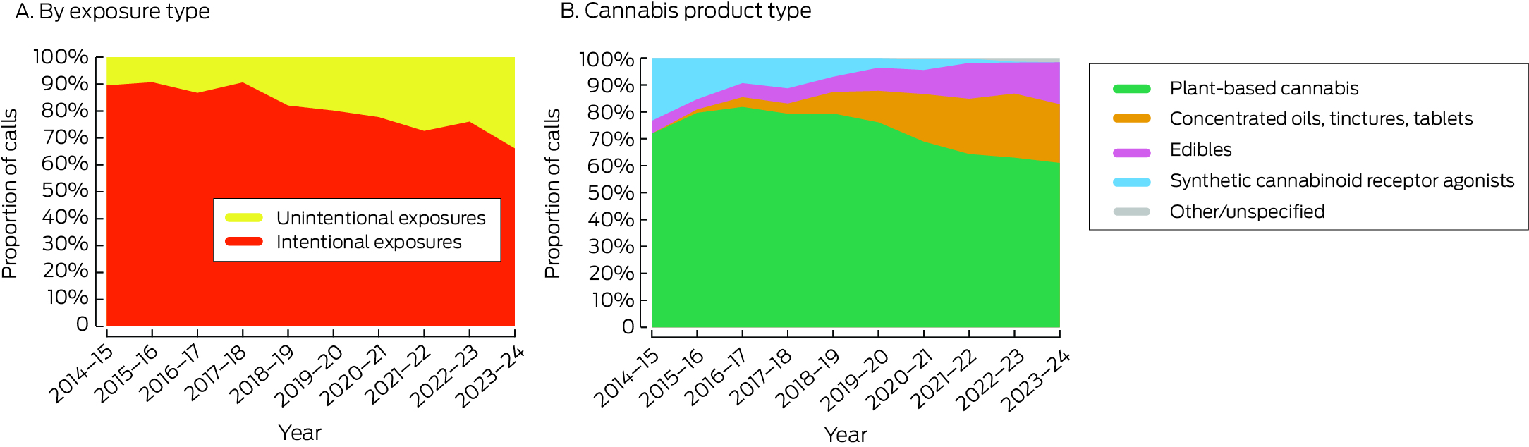 We found that the number of cannabis poisonings reported increased significantly in Australia during 2014–24, particularly exposures of children and adolescents. The reported number of exposures to edibles, which pose a particular risk for young children,13 has increased. Our findings are relevant to discussions of increasing access to medicinal cannabis and legalising its recreational use. Lessons learned overseas with different legislative models could be applied in Australia. For example, the sale of edibles is not permitted in some Canadian provinces, and significantly more children are hospitalised with cannabis intoxication in provinces where they are sold.2 While using orally ingested cannabis forms may be less harmful in the long term than smoking cannabis, the acute poisoning risk posed by edible forms of cannabis must be considered. Particular caution needs to be applied to confectionery forms that are attractive for children.