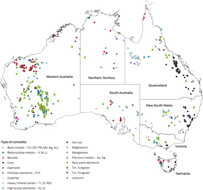 - 45. Hughes A, Britt A, Pheeney J, et al. Australia’s Identified Mineral Resources 2022. Canberra: Geoscience Australia, 2023. https://www.ga.gov.au/digital‐publication/aimr2022 (viewed June 2025).