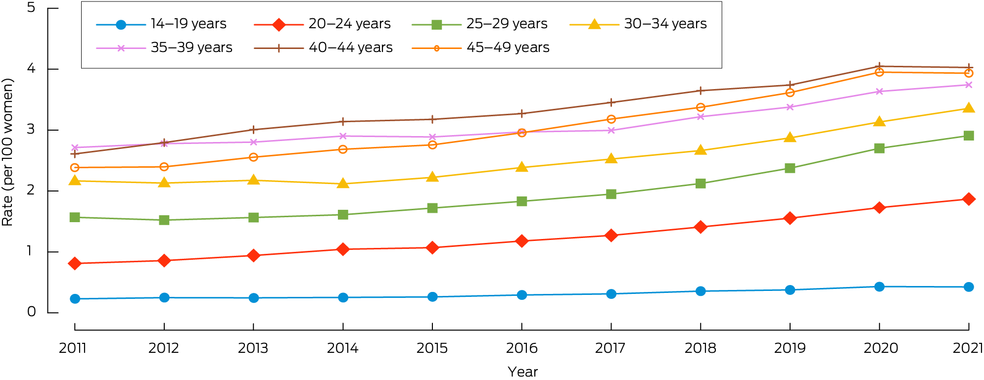 - 30. Grzeskowiak LE, Calabretto H, Amos N, et al. Changes in use of hormonal long‐acting reversible contraceptive methods in Australia between 2006 and 2018: a population‐based study. Aust N Z J Obstet Gynaecol 2021; 61: 128‐134.