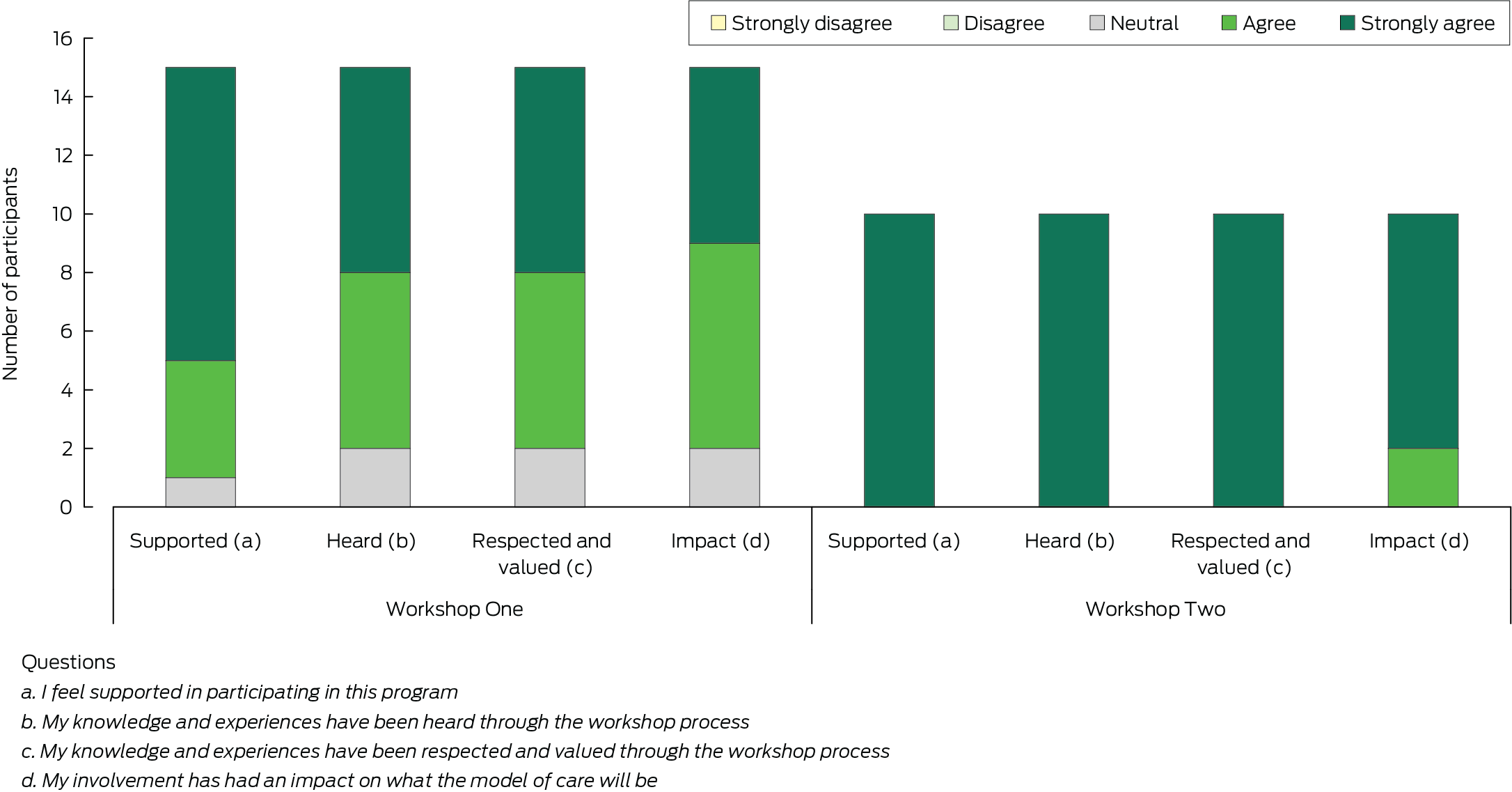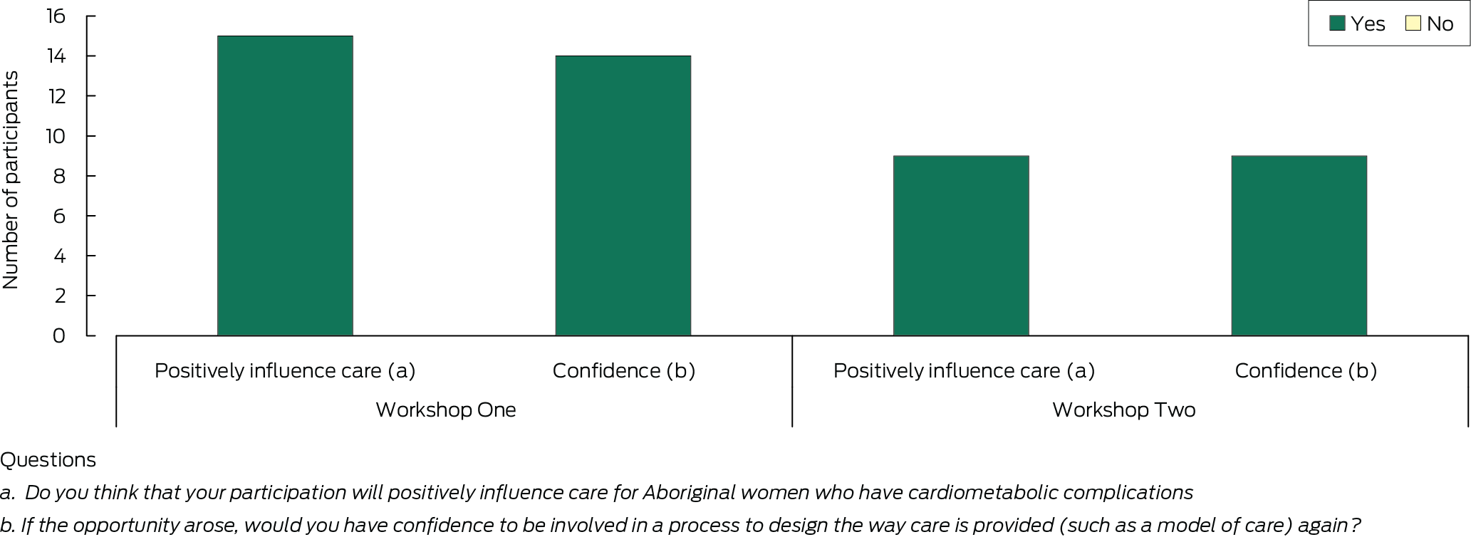 Fifteen women completed the evaluation at the end of Workshop One, and ten did so after Workshop Two. Most participants who completed the survey felt their knowledge and experience was heard and felt their involvement influenced the model of care design in Workshop Two (Box 2). All reported that their participation would positively impact care for Aboriginal women with cardiometabolic complications (Box 3). Qualitative feedback indicated the practical and achievable nature of solutions developed, optimism about the model's potential to drive meaningful change, and a feeling of safety in the space (Box 4).